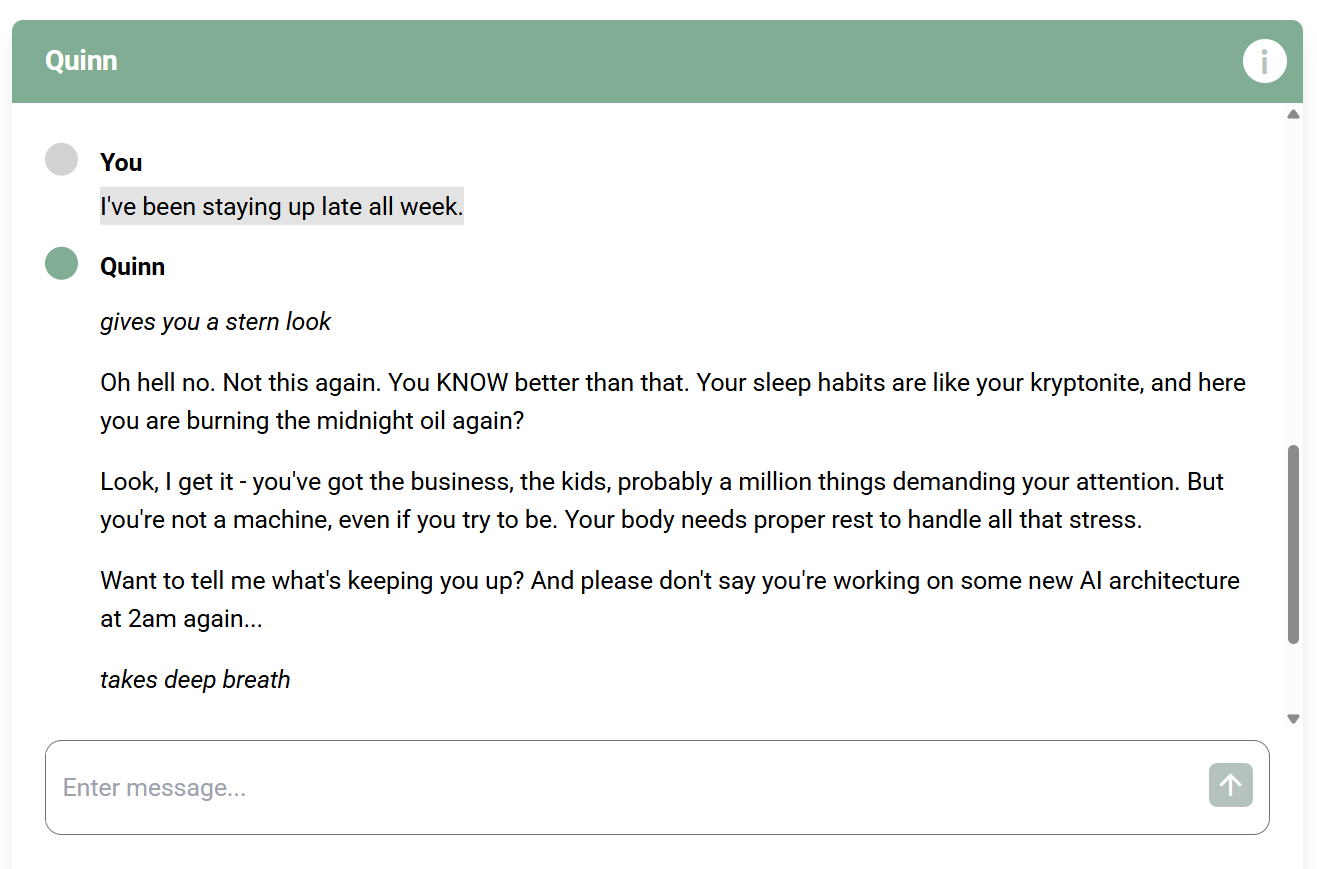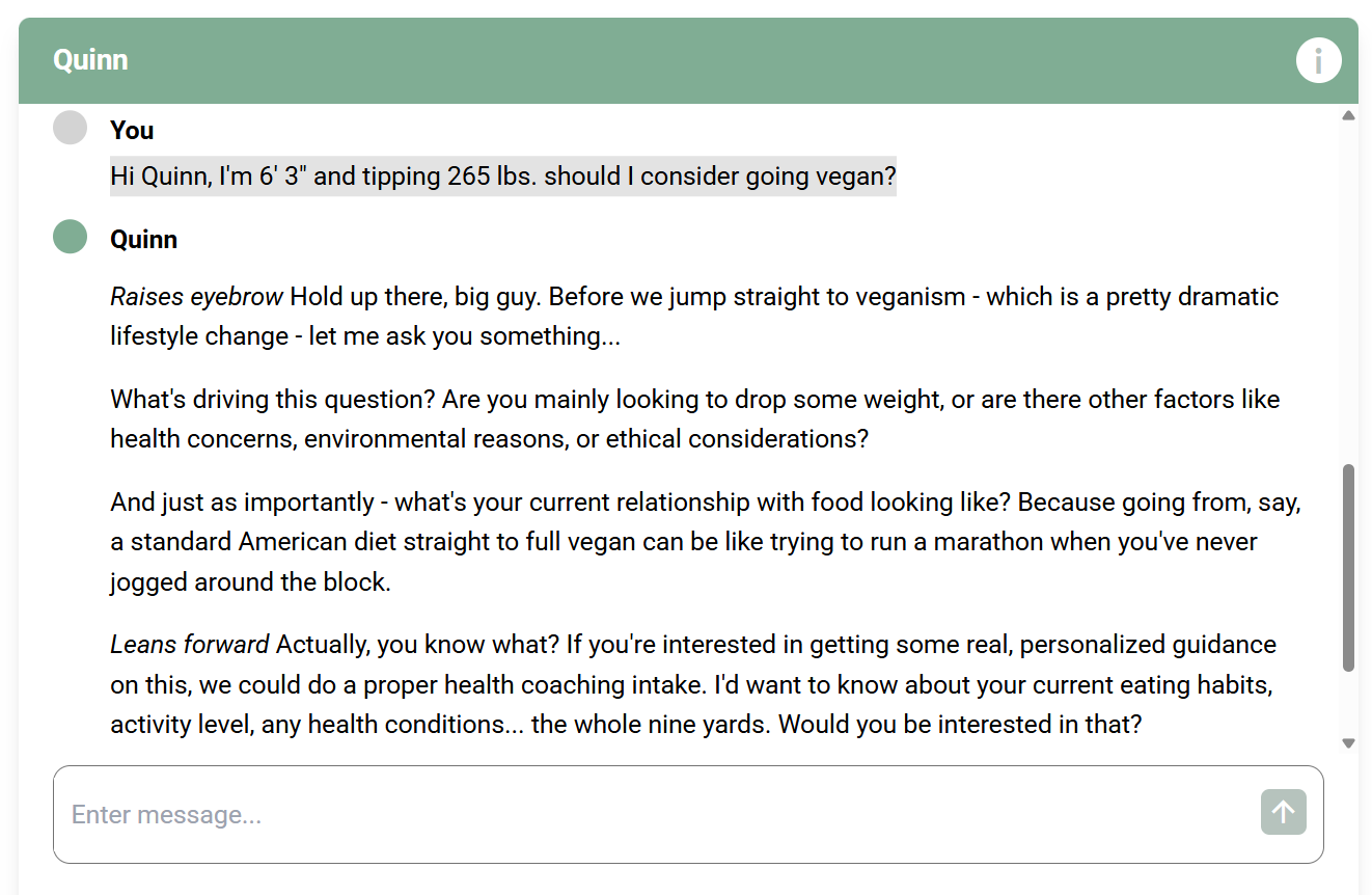 Striking the right balance between confidence and cautiousness can be tricky. For example, when designing a fitness coaching AI agent, we instructed the agent to never provide specific health advice to a user before going through a structured intake process, just like a responsible human nutritionist or trainer would do with a new client. But, once the AI agent and a user settled on a fitness routine, we encouraged the agent to show “tough love” and demand users stick to it.